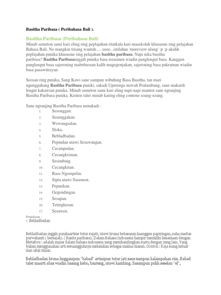 Kamu harus mencoba merasakan serunya bertemu orang Bali dan berbahasa Bali. An indirect criticism in which the ostensible and intended targets are quite different Mark Hobart Beyond Words Some thoughts about how Balinese argue For a symposium on How Indonesians Argue 3-5th. Sejeroning basita paribasa Bali kawastanin.