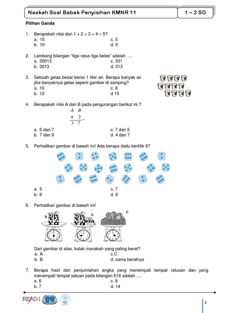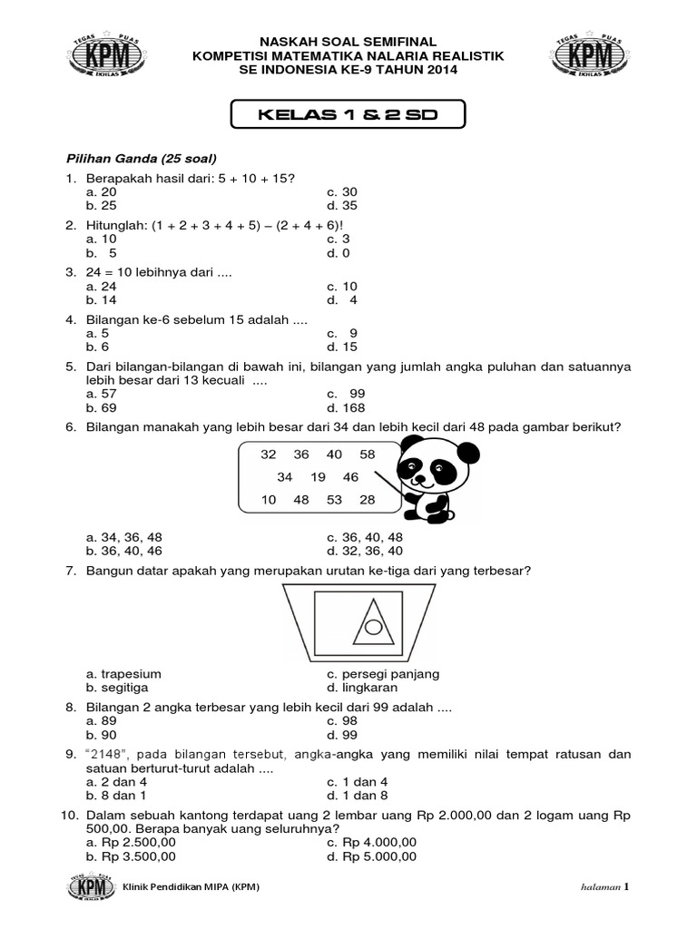 20210224 Artikel ini akan membahas beberapa Soal. Semi Final KMNR 12 kls 5-6pdf. Download Soal Penyisihan KMNR 10 kelas 5-6.