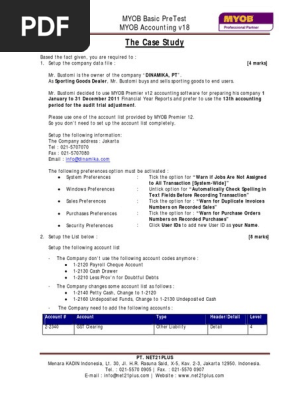 12 JURUSAN AKUNTANSI POLITEKNIK NEGERI SEMARANG TAHUN 2014 I. Contoh Soal Myob Beserta Jawabannya Part 1 Ulangan Harian. Soal Latihan Myob Akuntansi Dagang Air Mata Daun.